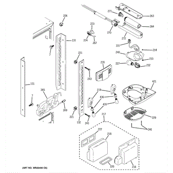Over time, the water filter housing and tube assembly can become damaged due to regular use, exposure to high water pressure, or mineral deposits building up inside the tubes. Such damage may lead to leaks or reduced water flow, affecting the performance of the refrigerator's water and ice systems.