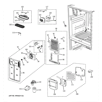 This is an evaporator cover and fan assembly that is used for the fresh food sections on refrigerators. This component makes up the back wall of the fresh food compartment and circulates the air over the evaporator to keep the food longer. If food is not staying as fresh for as long, it's a good idea to check this part for any damage and to ensure that it is working properly. The motor makes noise, such as a high pitched sound, if the evaporator fan motor is going bad. If that's the case, the entire evaporate and fan assembly will need to be replaced. Disconnect the refrigerator from its power source before replacing this part. Wear work gloves to protect the hands during this process.This evaporator cover and fan assembly is sold individually. It's a genuine OEM part that comes straight from the manufacturer. This part is compatible with refrigerators that are manufactured by GE.