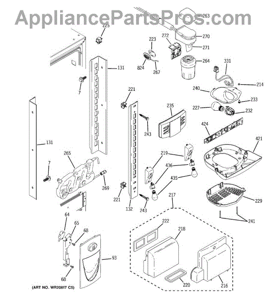 The GE Refrigerator Water Filter Housing and Tube Assembly is an OEM part for GE refrigerators. It houses the water filter and connects it to the water supply line, ensuring clean and filtered water is dispensed.