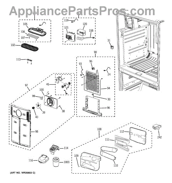 This is an evaporator cover and fan assembly that is used for the fresh food sections on refrigerators. This component makes up the back wall of the fresh food compartment and circulates the air over the evaporator to keep the food longer. If food is not staying as fresh for as long, it's a good idea to check this part for any damage and to ensure that it is working properly. The motor makes noise, such as a high pitched sound, if the evaporator fan motor is going bad. If that's the case, the entire evaporate and fan assembly will need to be replaced. Disconnect the refrigerator from its power source before replacing this part. Wear work gloves to protect the hands during this process.This evaporator cover and fan assembly is sold individually. It's a genuine OEM part that comes straight from the manufacturer. This part is compatible with refrigerators that are manufactured by GE.
