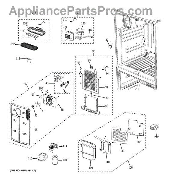 This is an evaporator cover and fan assembly that is used for the fresh food sections on refrigerators. This component makes up the back wall of the fresh food compartment and circulates the air over the evaporator to keep the food longer. If food is not staying as fresh for as long, it's a good idea to check this part for any damage and to ensure that it is working properly. The motor makes noise, such as a high pitched sound, if the evaporator fan motor is going bad. If that's the case, the entire evaporate and fan assembly will need to be replaced. Disconnect the refrigerator from its power source before replacing this part. Wear work gloves to protect the hands during this process.This evaporator cover and fan assembly is sold individually. It's a genuine OEM part that comes straight from the manufacturer. This part is compatible with refrigerators that are manufactured by GE.