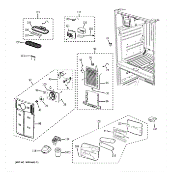 This is an evaporator cover and fan assembly that is used for the fresh food sections on refrigerators. This component makes up the back wall of the fresh food compartment and circulates the air over the evaporator to keep the food longer. If food is not staying as fresh for as long, it's a good idea to check this part for any damage and to ensure that it is working properly. The motor makes noise, such as a high pitched sound, if the evaporator fan motor is going bad. If that's the case, the entire evaporate and fan assembly will need to be replaced. Disconnect the refrigerator from its power source before replacing this part. Wear work gloves to protect the hands during this process.This evaporator cover and fan assembly is sold individually. It's a genuine OEM part that comes straight from the manufacturer. This part is compatible with refrigerators that are manufactured by GE.