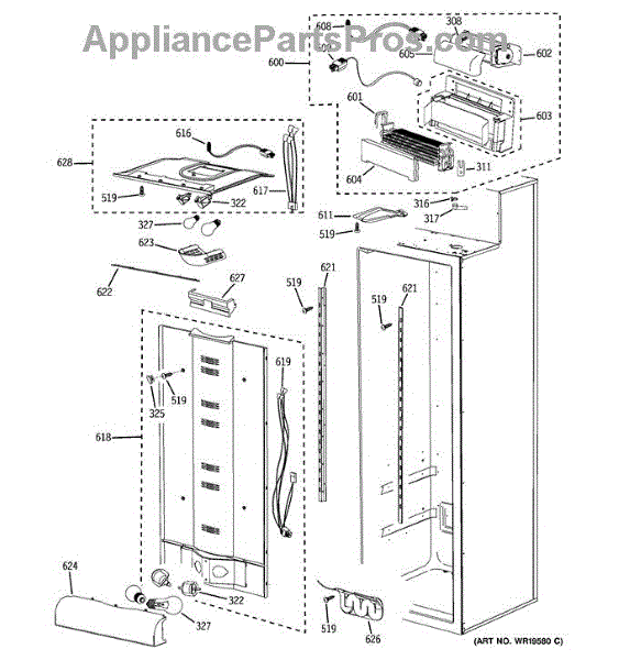 Parts for Ge PSB42LGRWV: Fresh Food Section Parts