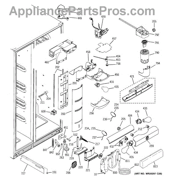 The Refrigerator Damper Assembly is an OEM part for GE refrigerators. It regulates the flow of cold air from the freezer compartment to the refrigerator, ensuring proper temperature control within the fridge.