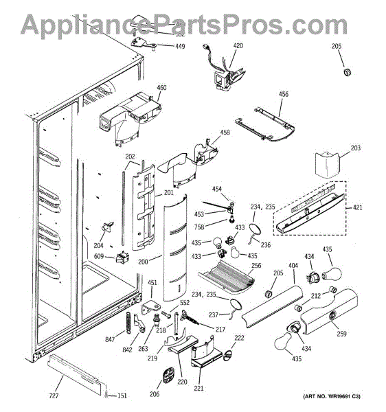 The Refrigerator Damper Assembly is an OEM part for GE refrigerators. It regulates the flow of cold air from the freezer compartment to the refrigerator, ensuring proper temperature control within the fridge.