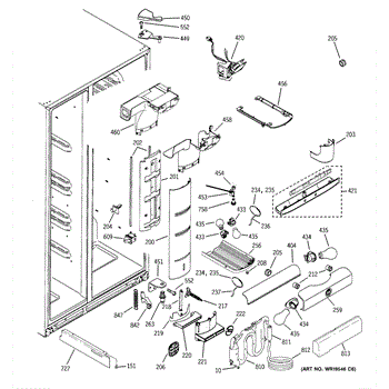This air diverter is a duct component that directs and balances airflow inside the refrigerator. Replacing a cracked or missing diverter helps restore proper cooling performance and reduce frost or condensation around air passages.