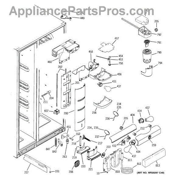 The Water Filter Housing Assembly is an OEM part for GE refrigerators. The water filter head holds the water filter and connects the water lines to the water filter. Includes the filter head and water lines. Causes can involve cracks, deformities or wear to sealing surfaces over time. Accidental dents or impacts may compromise housing integrity. Symptoms of a bad housing assembly include: