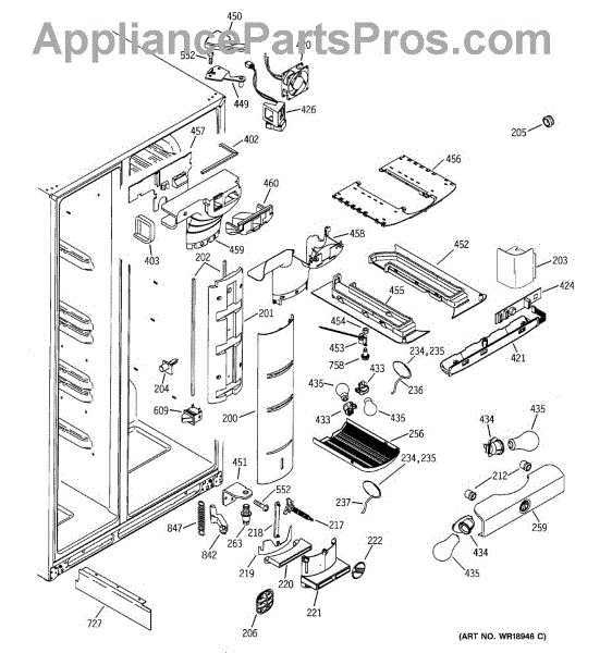 The Refrigerator Damper Assembly is an OEM part for GE refrigerators. It regulates the flow of cold air from the freezer compartment to the refrigerator, ensuring proper temperature control within the fridge.