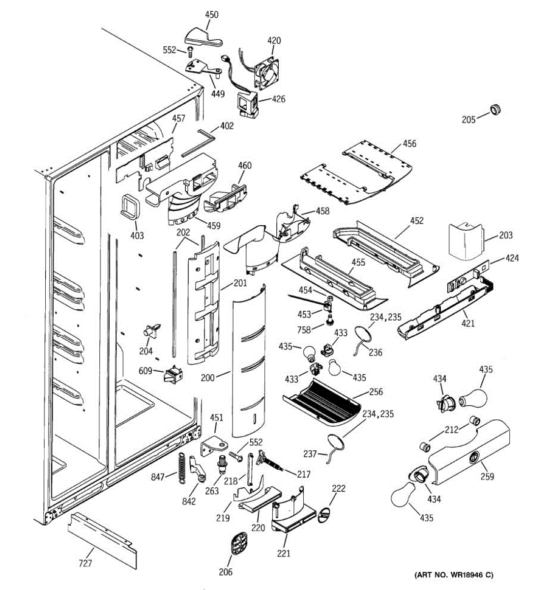 Fresh food side. For the same part in black, purchase WR11X10009.