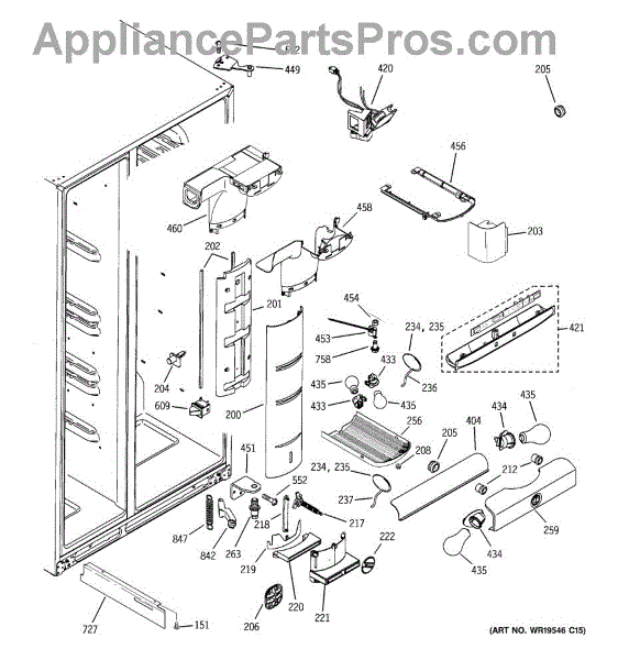 The Refrigerator Damper Assembly is an OEM part for GE refrigerators. It regulates the flow of cold air from the freezer compartment to the refrigerator, ensuring proper temperature control within the fridge.