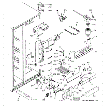 This air diverter is a duct component that directs and balances airflow inside the refrigerator. Replacing a cracked or missing diverter helps restore proper cooling performance and reduce frost or condensation around air passages.