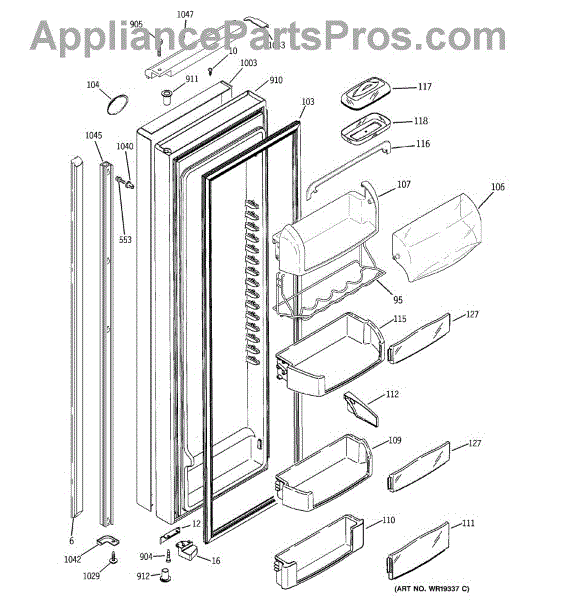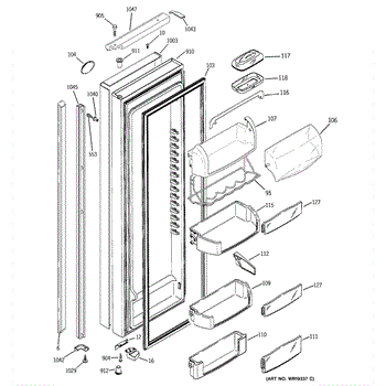 The Door Bin is an OEM part for GE refrigerators. It is a convenient storage compartment located on the interior of the refrigerator door, designed to hold and organize smaller items such as condiments, jars, or beverages.