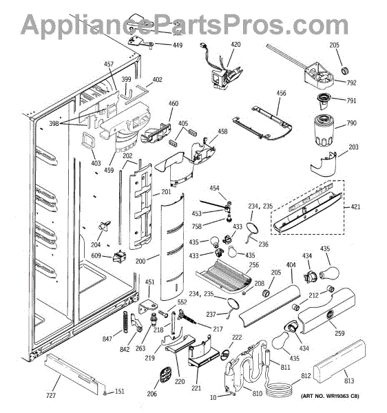 The Refrigerator Damper Assembly is an OEM part for GE refrigerators. It regulates the flow of cold air from the freezer compartment to the refrigerator, ensuring proper temperature control within the fridge.