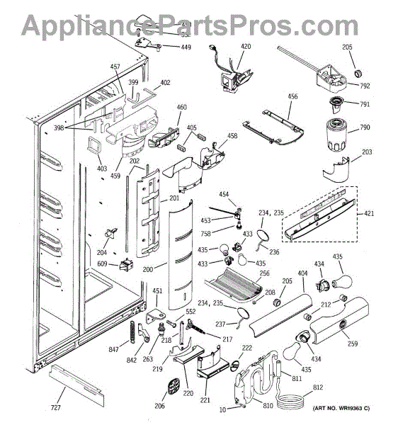 The Refrigerator Damper Assembly is an OEM part for GE refrigerators. It regulates the flow of cold air from the freezer compartment to the refrigerator, ensuring proper temperature control within the fridge.