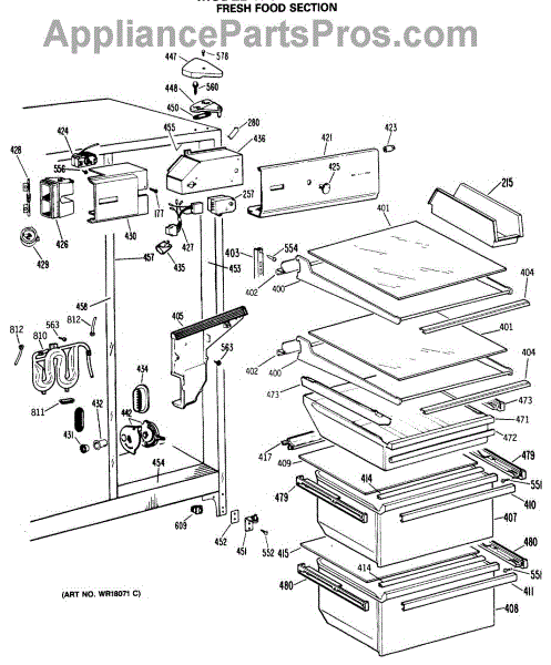 Parts for Ge TFC22ZRSBWW: 03 - Fresh Food Section Parts