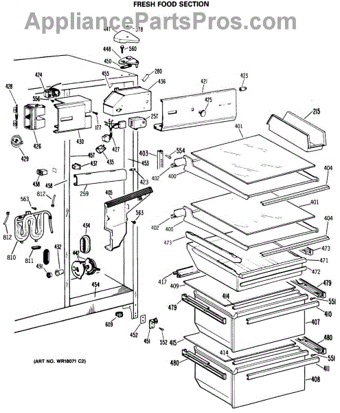 Parts for Ge TFC24ZFSBAD: 04 - Fresh Food Section Parts