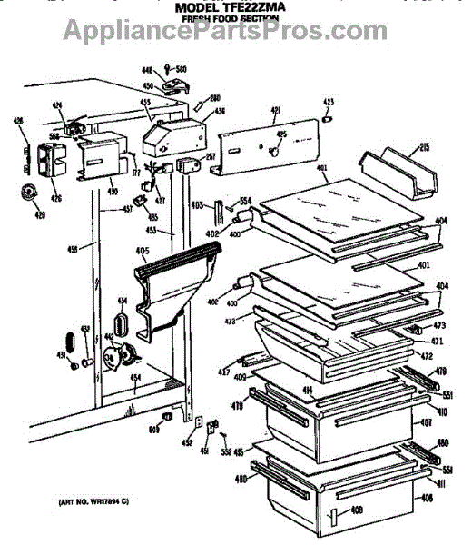 Parts for Ge TFE22ZMA: Fresh Food Section Parts