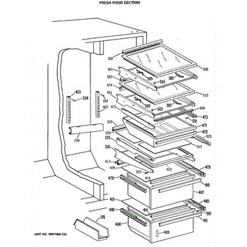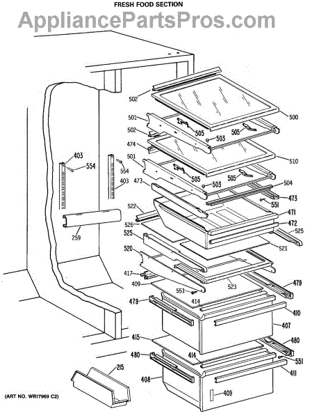 Causes for a malfunctioning Crisper Drawer Slide can include wear and tear from regular use, the accumulation of debris obstructing the slide's path, or damage incurred from overloading the drawer. This GE replacement part is also compatible with Hotpoint, RCA, and some Kenmore models. For matching left-hand side order WR72X209.