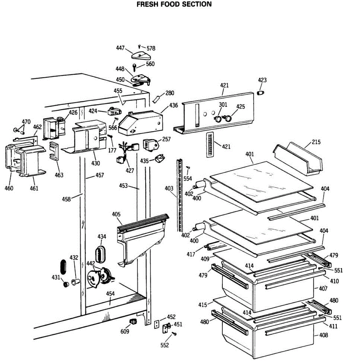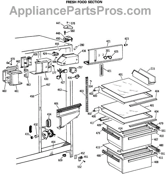 Parts for Ge TFG20JASCWH: 03 - Fresh Food Section Parts