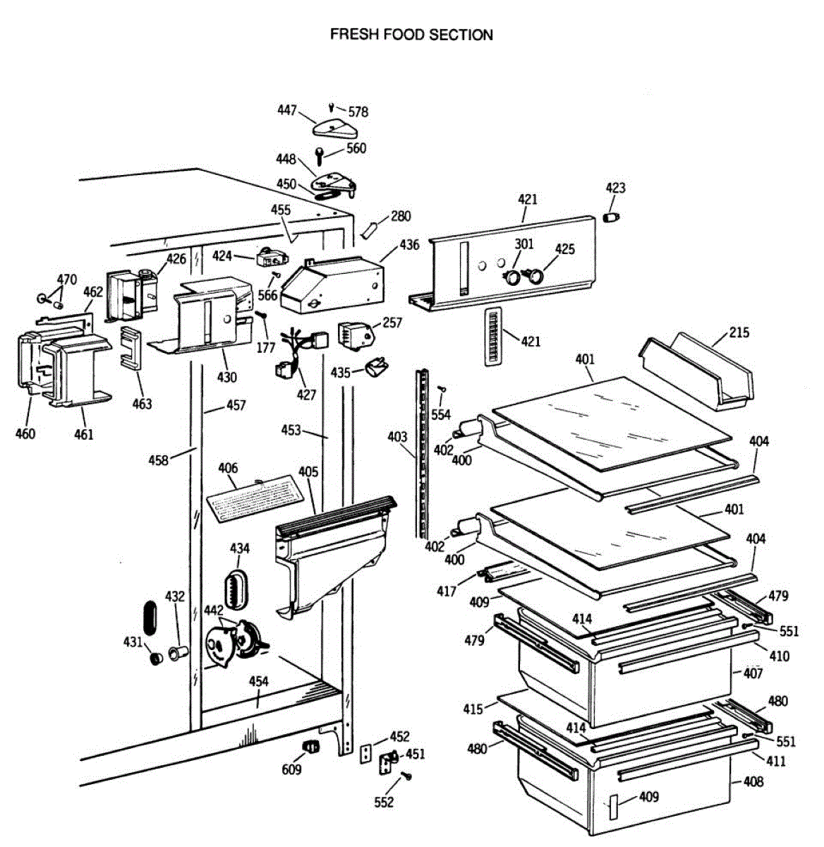 Parts for Ge TFG20JATCWH: 03 - Fresh Food Section Parts