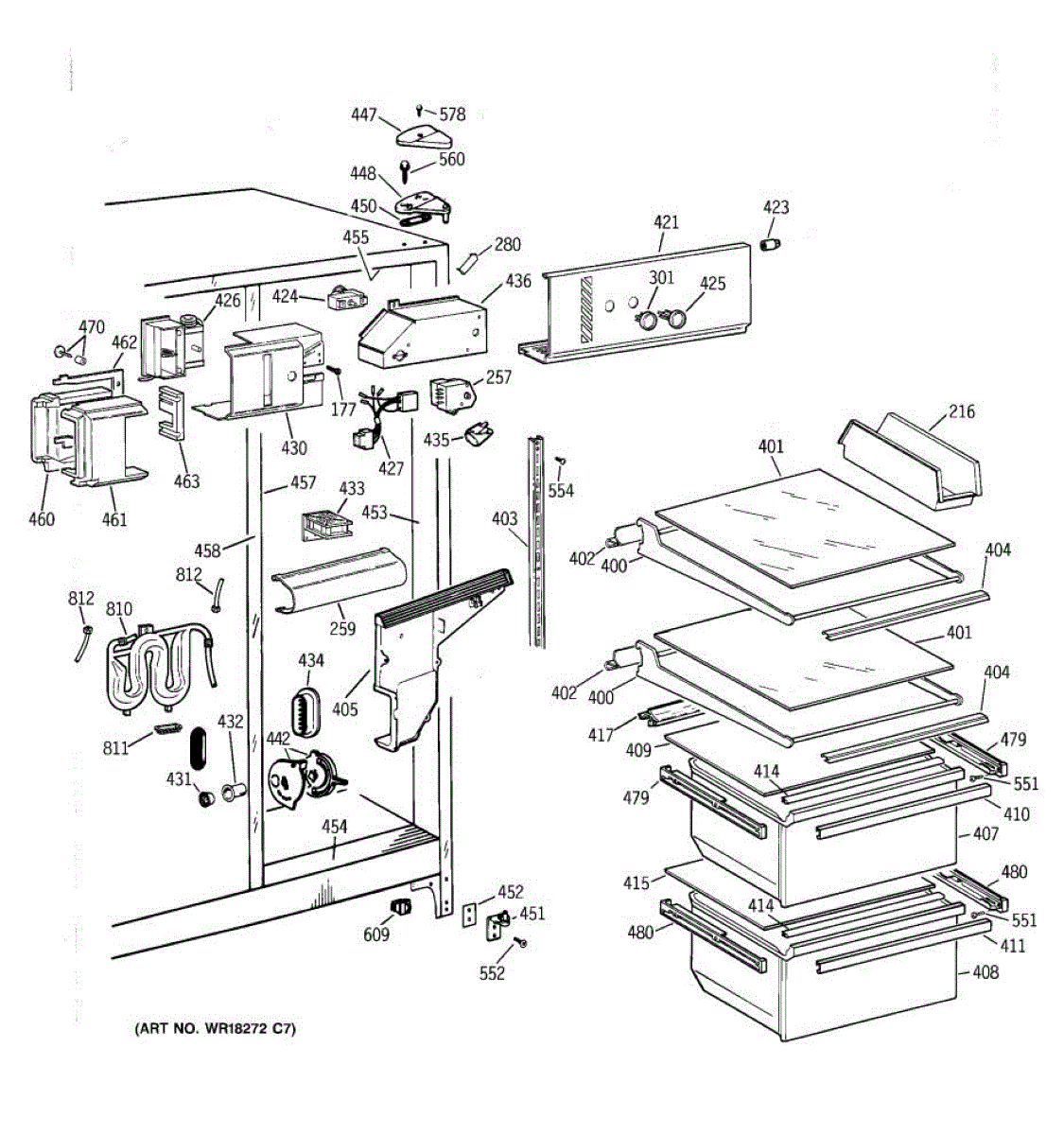 The Drawer Slide Assembly is an OEM part for GE refrigerators. It allows for smooth and easy movement of the refrigerator drawers, ensuring convenient access to stored food items. It provides the necessary support and stability to hold the weight of the contents within the drawers. The slide measures approximately 16 1/4 inches long.