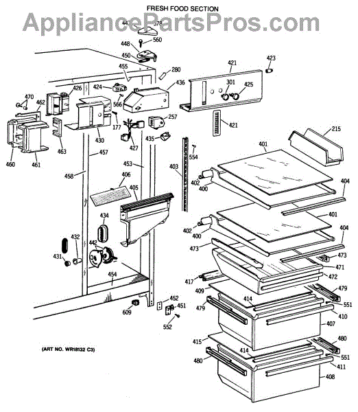 Parts for Ge TFG22ZATCWH: 03 - Fresh Food Section Parts