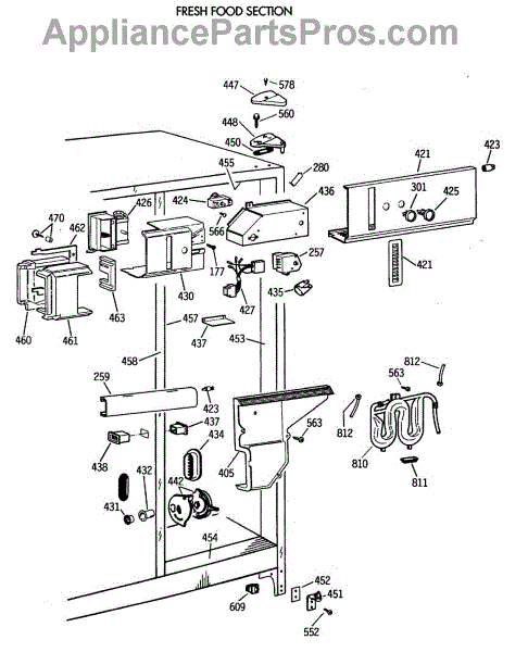 Parts for Ge TFG24PRVAWW: 04 - Fresh Food Section Parts