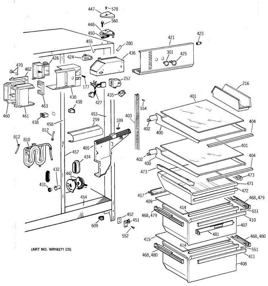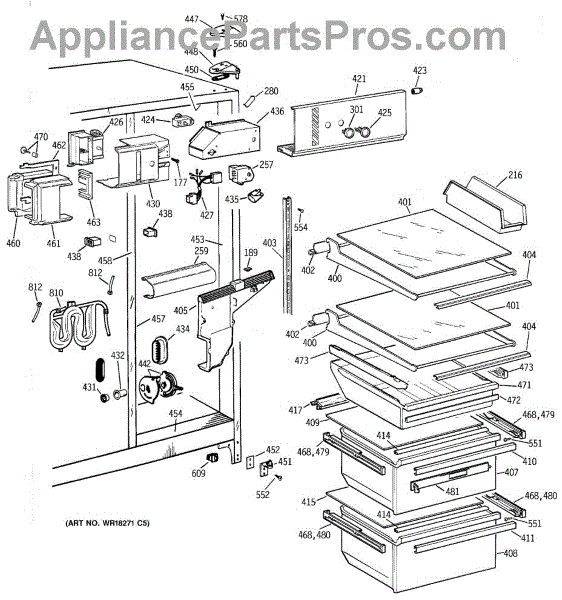 Parts for Ge TFG25JRBEWW: 03 - Fresh Food Section Parts