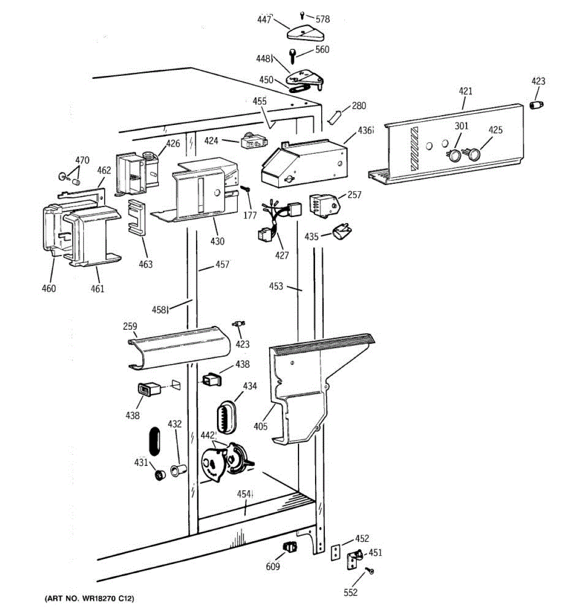 The Light Switch is an OEM replacement part for GE refrigerators. It controls the interior light, turning it on when the refrigerator door is opened and off when the door is closed. This ensures proper illumination for visibility when accessing the refrigerator's contents.