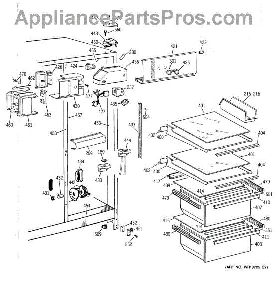 Parts for Ge TFK20JABGAA: 03 - Fresh Food Section Parts