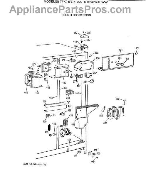 Parts for Ge TFK24PRXBWW: 04 - Fresh Food Section Parts