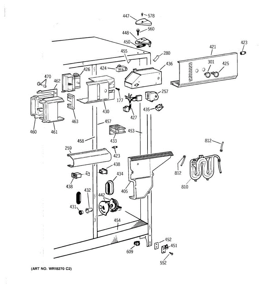 This water tank is the internal reservoir that stores and chills water for the refrigerator dispenser. Replacing a damaged tank helps restore proper dispenser flow and prevents water from pooling inside the fresh food compartment. What it does: