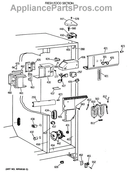 The Light Switch is an OEM replacement part for GE refrigerators. It controls the interior light, turning it on when the refrigerator door is opened and off when the door is closed. This ensures proper illumination for visibility when accessing the refrigerator's contents.