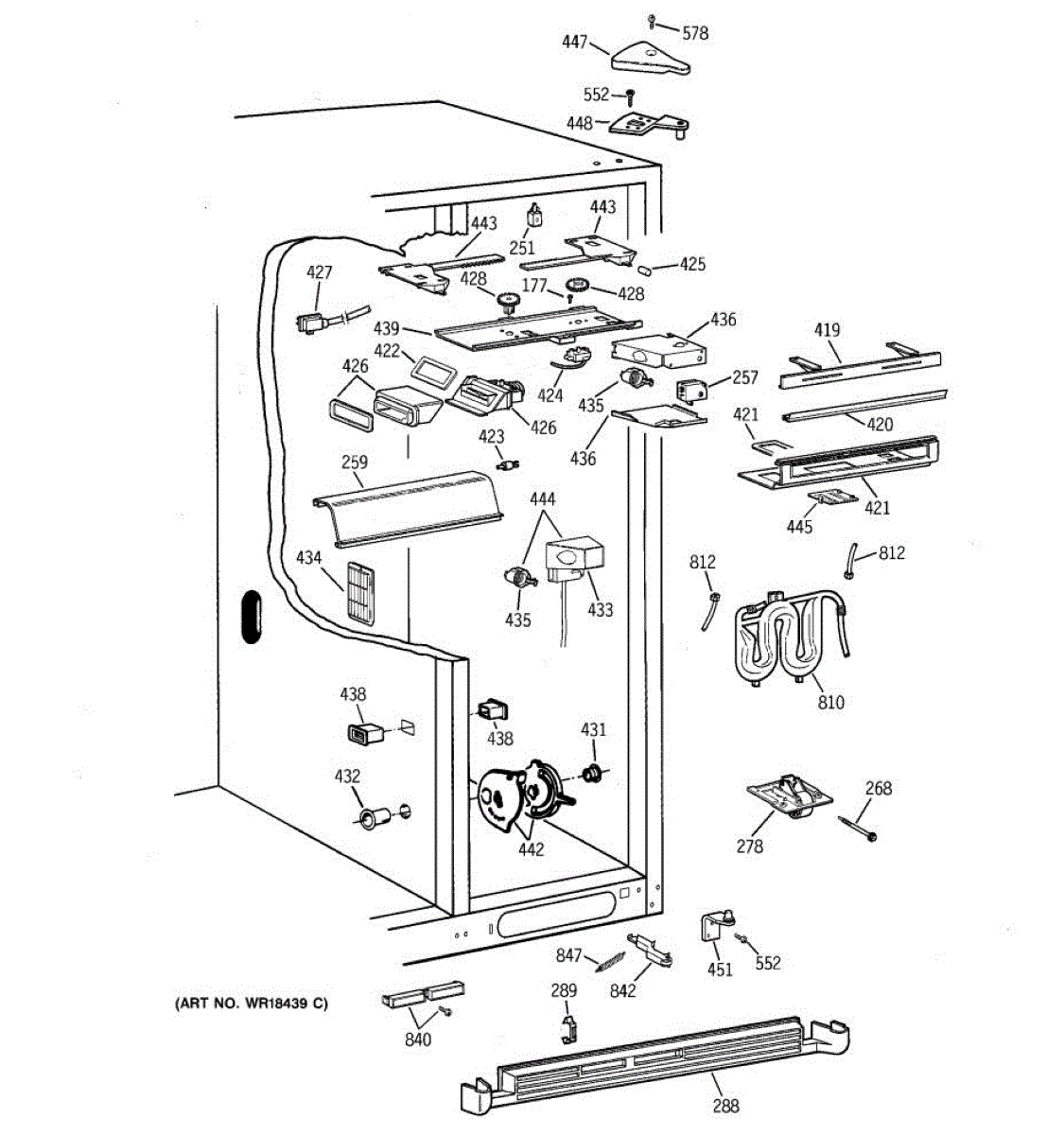 This water tank is the internal reservoir that stores and chills water for the refrigerator dispenser. Replacing a damaged tank helps restore proper dispenser flow and prevents water from pooling inside the fresh food compartment. What it does: