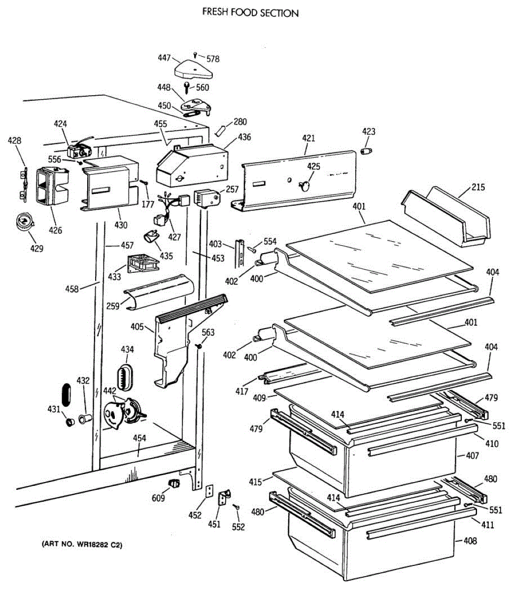 A bad Drawer Slide Assembly can occur due to wear and tear over time, excessive load strain, or damage caused by accidental mishandling. If the slide assembly becomes worn, bent, or broken, it can lead to issues such as difficulty in opening or closing the refrigerator drawers, as well as potential damage to the drawers or their contents.