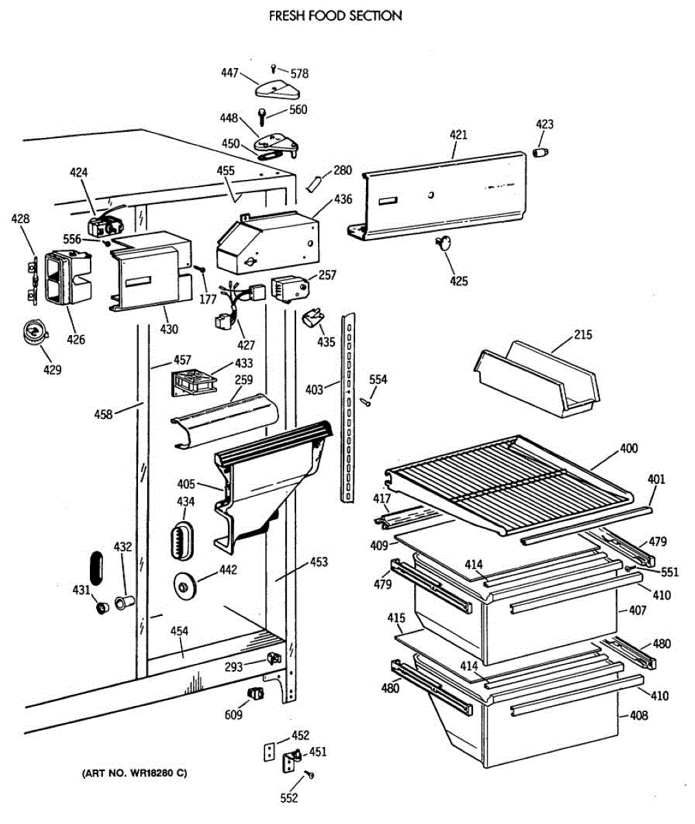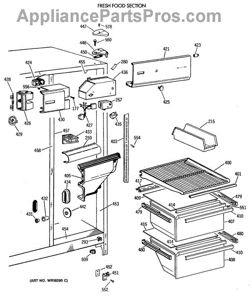 Causes for a malfunctioning Crisper Drawer Slide can include wear and tear from regular use, the accumulation of debris obstructing the slide's path, or damage incurred from overloading the drawer. This GE replacement part is also compatible with Hotpoint, RCA, and some Kenmore models. For matching left-hand side order WR72X209.