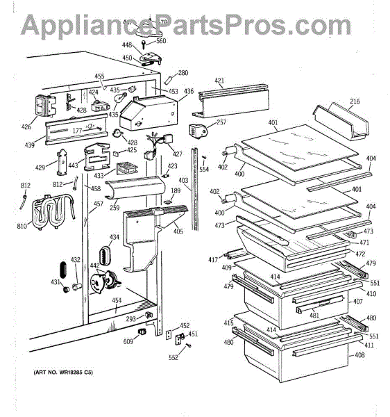 Parts for Ge TFT22JWBAAA: 03 - Fresh Food Section Parts