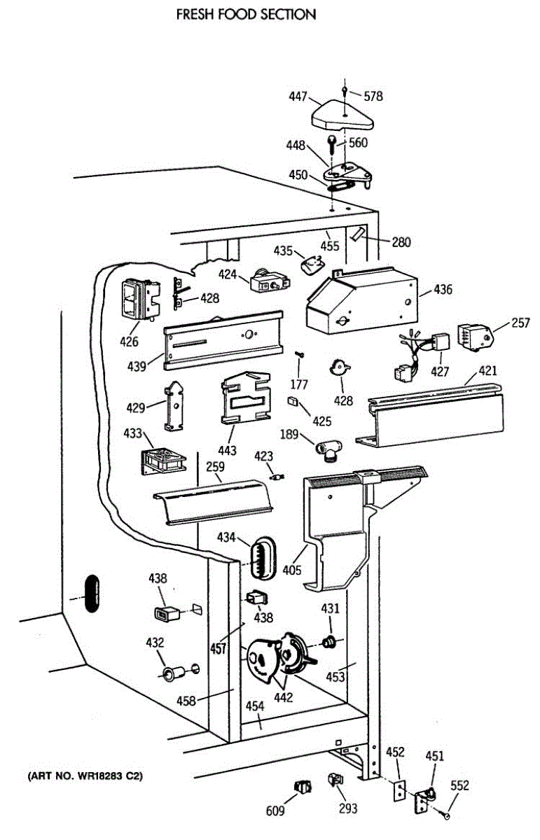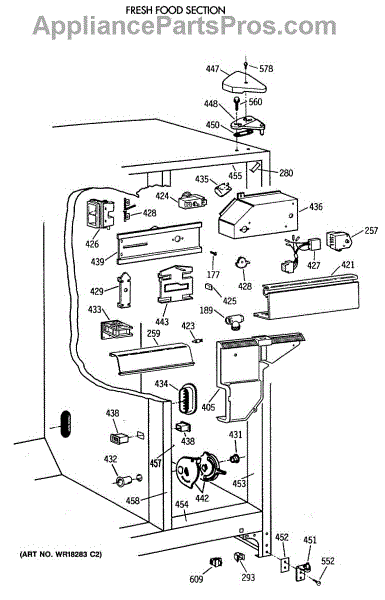 The Light Switch is an OEM replacement part for GE refrigerators. It controls the interior light, turning it on when the refrigerator door is opened and off when the door is closed. This ensures proper illumination for visibility when accessing the refrigerator's contents.