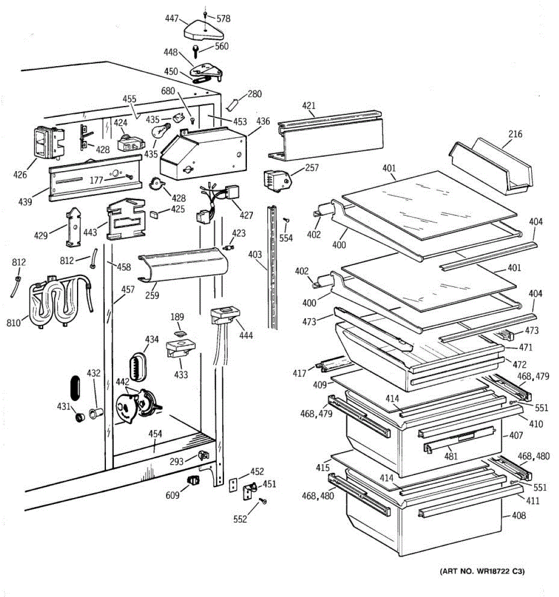 The Slide Assembly RH is an OEM replacement part for GE side-by-side refrigerators. As a replaceable sub-assembly, it restores smooth extension of plastic vegetable/multi-purpose slides on the right interior. The slide measures approximately 16 inches.