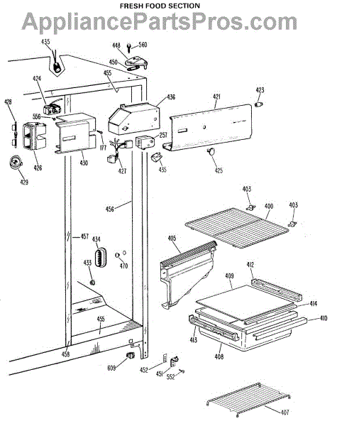 Parts for Ge TFX19LJF: 03 - Fresh Food Section Parts