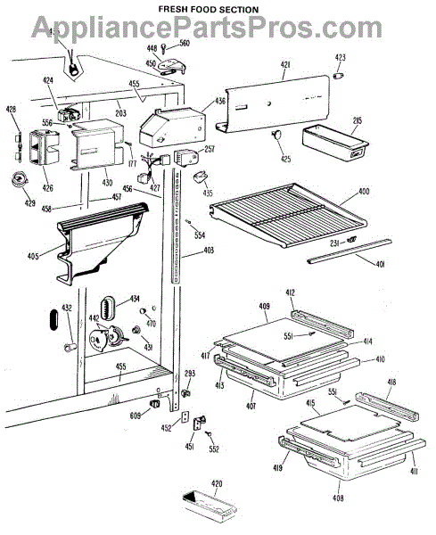 Parts for Ge TFX20DKB: 03 - Fresh Food Section Parts