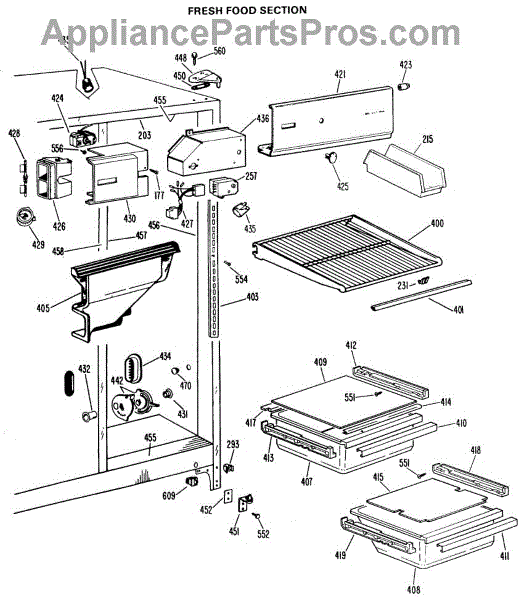 Parts for Ge TFX20DLG: 03 - Fresh Food Section Parts