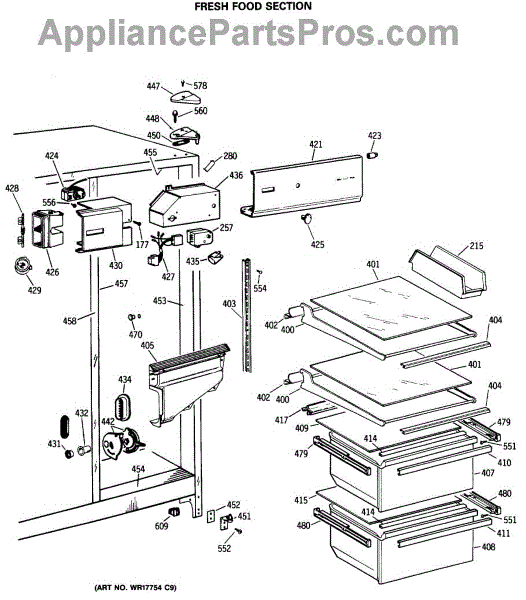 The Drawer Slide Assembly is an OEM part for GE refrigerators. It allows for smooth and easy movement of the refrigerator drawers, ensuring convenient access to stored food items. It provides the necessary support and stability to hold the weight of the contents within the drawers. The slide measures approximately 16 1/4 inches long.