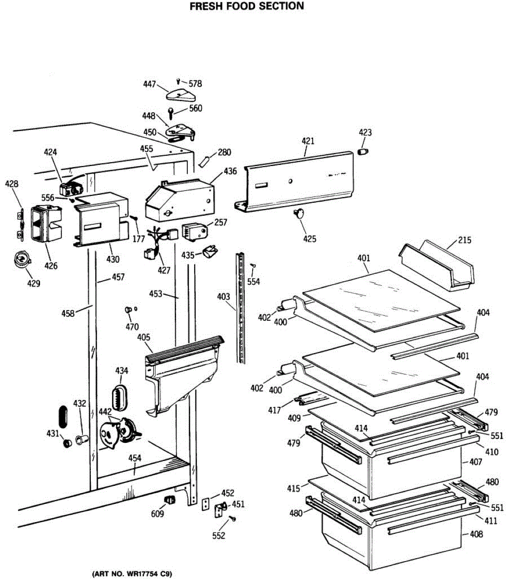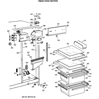 Parts for Ge TFX20JASBWH: 03 - Fresh Food Section Parts