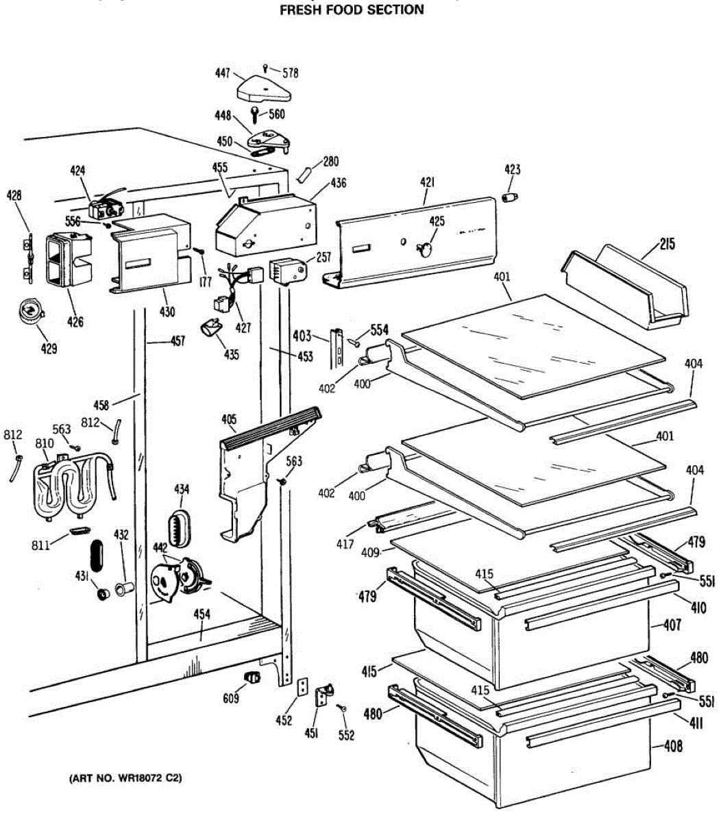 Causes for a malfunctioning Crisper Drawer Slide can include wear and tear from regular use, the accumulation of debris obstructing the slide's path, or damage incurred from overloading the drawer. This GE replacement part is also compatible with Hotpoint, RCA, and some Kenmore models. For matching left-hand side order WR72X209.