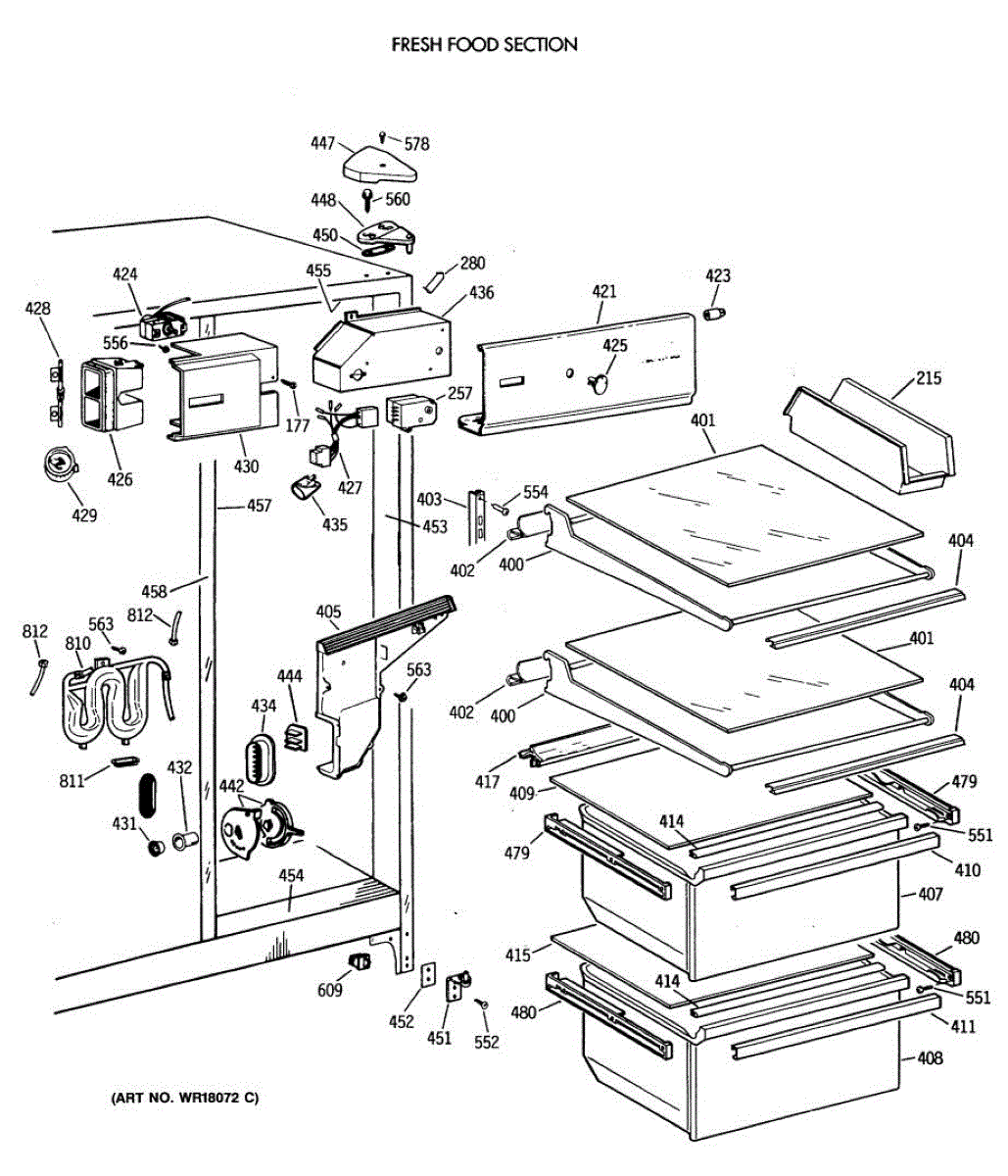 The Drawer Slide Assembly is an OEM part for GE refrigerators. It allows for smooth and easy movement of the refrigerator drawers, ensuring convenient access to stored food items. It provides the necessary support and stability to hold the weight of the contents within the drawers. The slide measures approximately 16 1/4 inches long.