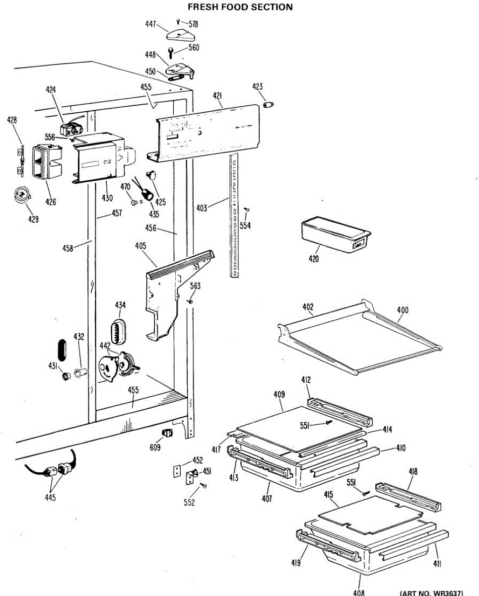 The left Drawer Rail Slide is an OEM part for GE refrigerators. It provides smooth sliding action for refrigerator drawers, ensuring easy access and optimal storage management. This component guides the drawer in and out, preventing misalignment and supporting the weight of the drawer and its contents. It measures approximately 14 7/8 inches long.