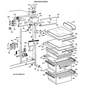 This left-hand drawer slide assembly mounts inside the refrigerator's fresh food section. It supports the shelf/cover and guides the drawer on its track, restoring smooth operation and proper alignment when the original rail is cracked or worn.
