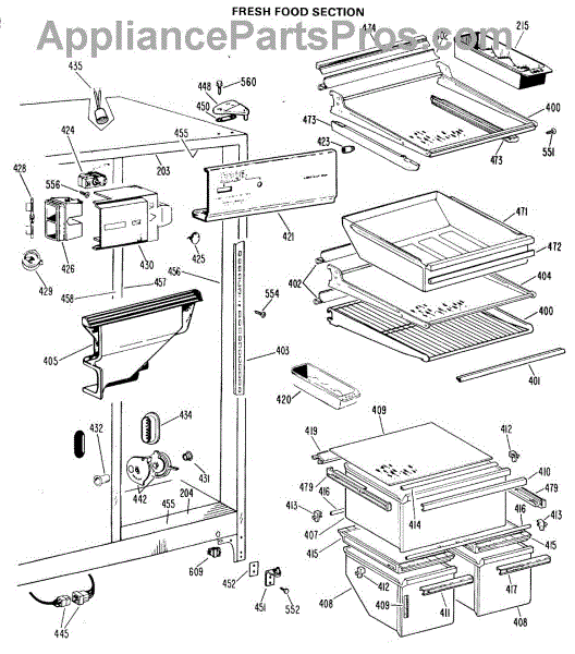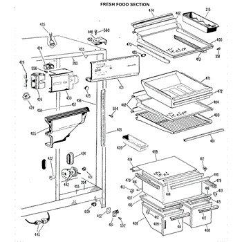 Parts for Ge TFX22DJE: 03 - Fresh Food Section Parts