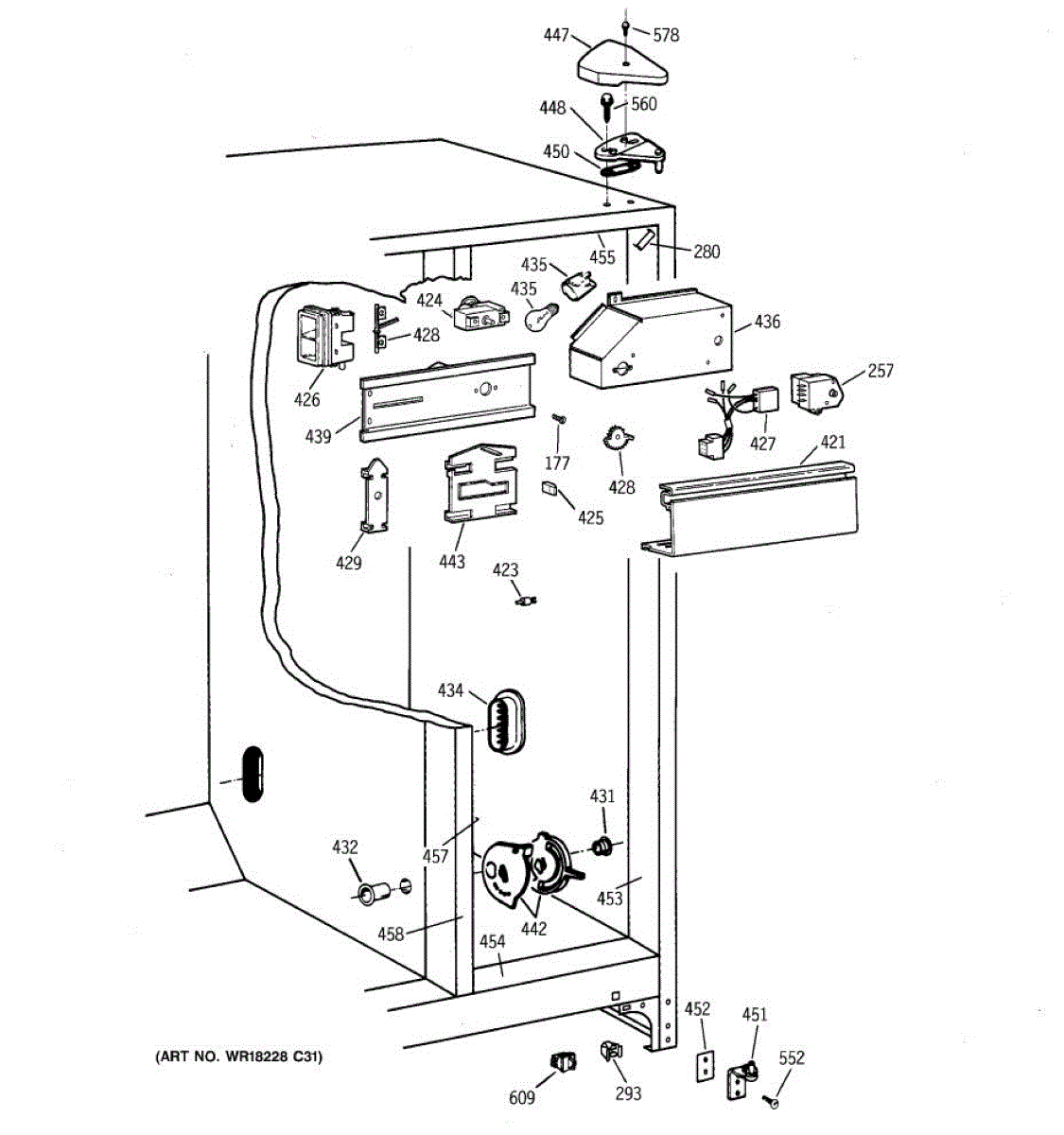 Parts for Ge TFX22JABEWW: 05 - Fresh Food Section Parts